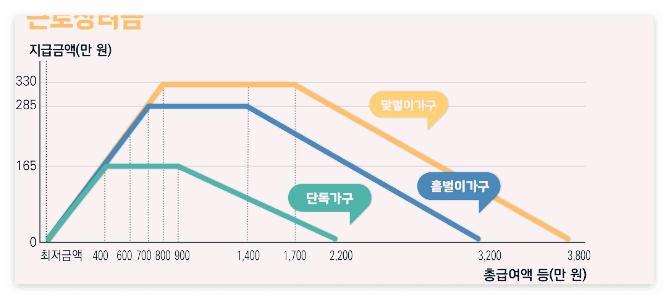 홑벌이 가구: 연간 소득 700만 원 이하인 경우 최대 285만 원 지급