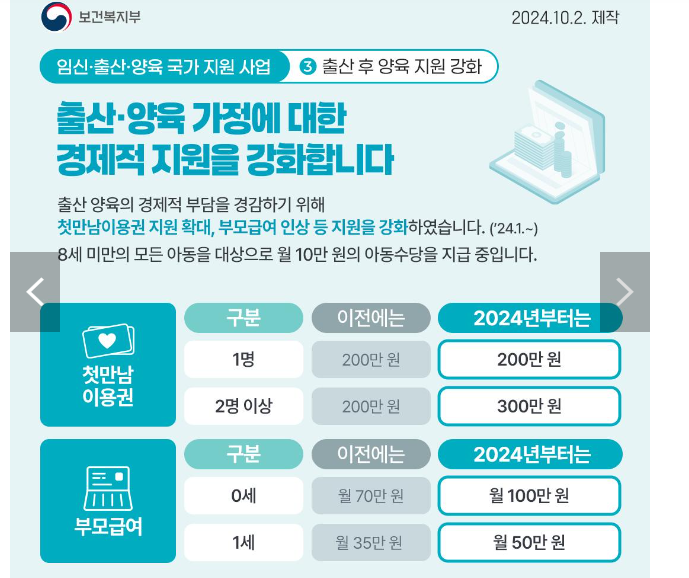 (첫만남 이용권, 다둥이 아이돌봄서비스 확대 등등)