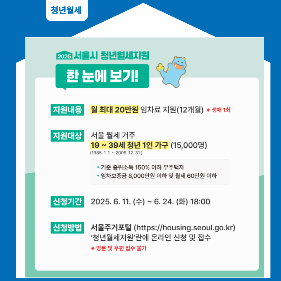 2025년 서울시 청년 월세 지원 신청 기간은 6월 11일부터 6월 24일까지였습니다.