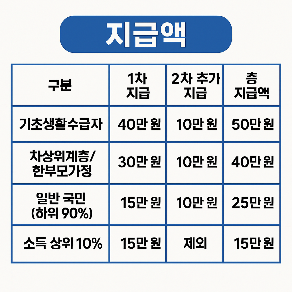 | 일반 국민 (하위 90%) | 15만 원 | 10만 원 | 25만 원 |