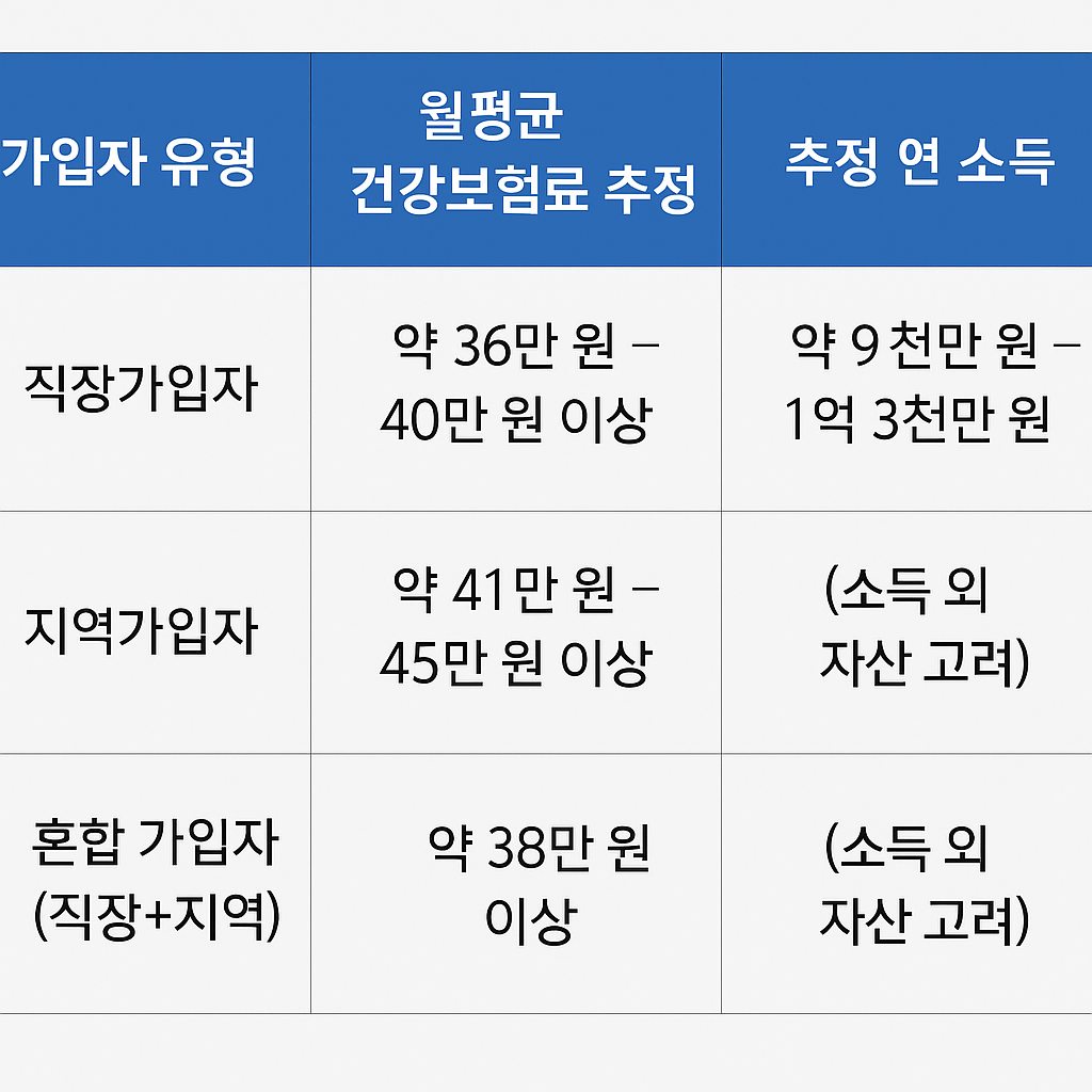 | 혼합 가입자 (직장+지역) | 약 38만 원 이상 | (소득 외 자산 고려) |