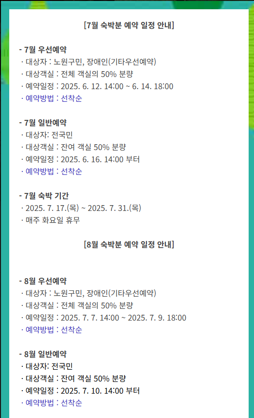 회원가입 후 원하는 날짜와 객실을 선택하면 되는데, 인기가 워낙 많아 예약 경쟁이 치열합니다.