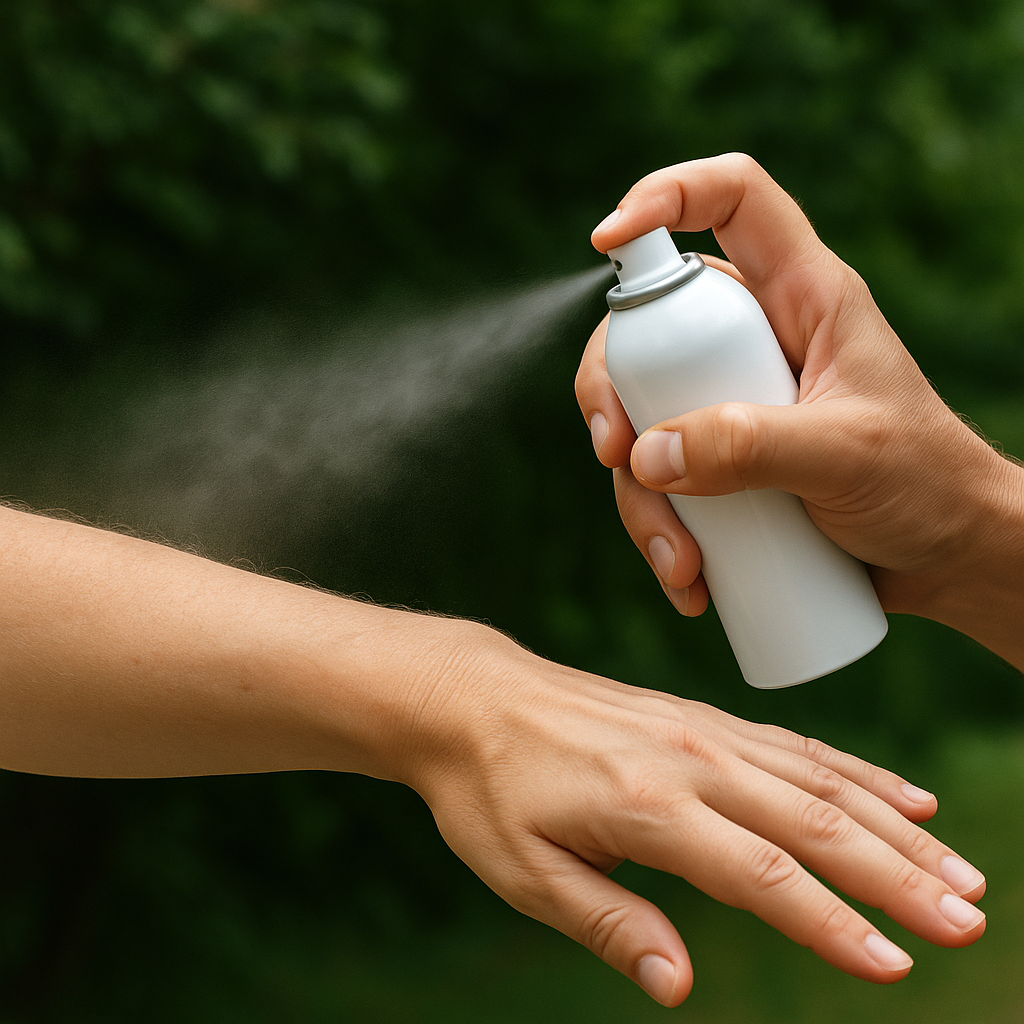 | DEET (디에틸톨루아미드) | 피부 또는 의류에 직접 뿌리거나 바름 (어린이용은 농도 10~30%) | - 강력한 효과- 지속시간 김 (최대 10시간)- 다양한 제품군 존재 | - 냄새가 강함- 플라스틱, 안경, 네일코팅 손상 가능- 피부 자극 가능성 있음 |