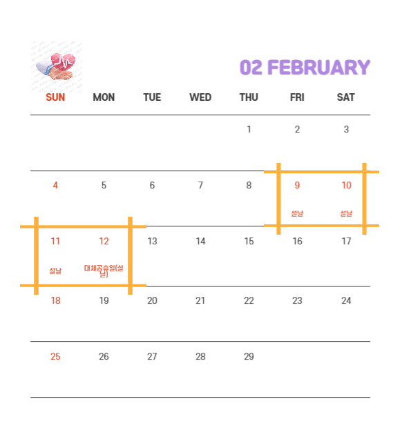 2) 2월 9일 ~ 12일 (설날 연휴)