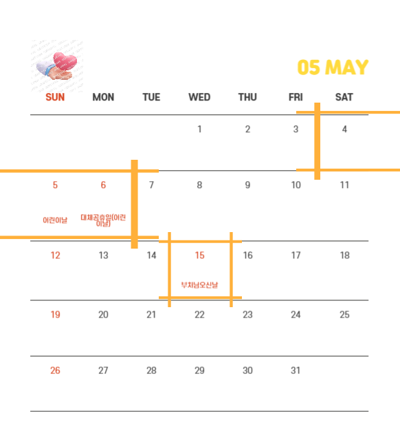 징검다리 날짜에 휴가를 사용하면 연휴를 즐길수 있는데요. 아래와 같이 징검다리휴일 정리하였습니다.